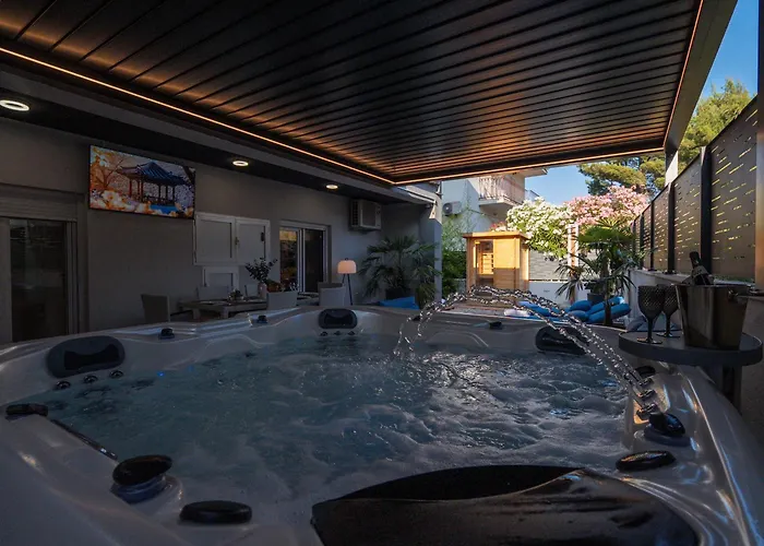 El Apartment Del Alma Split, está situado en el barrio Stobrec de Split, a unos 7 km del Palacio de Diocleciano, y tiene vistas al jardín. Este apartamento cuenta con un jacuzzi, una bañera de hidromasaje y una sauna. Está situado justo al lado de Crkva svetog Lovre.